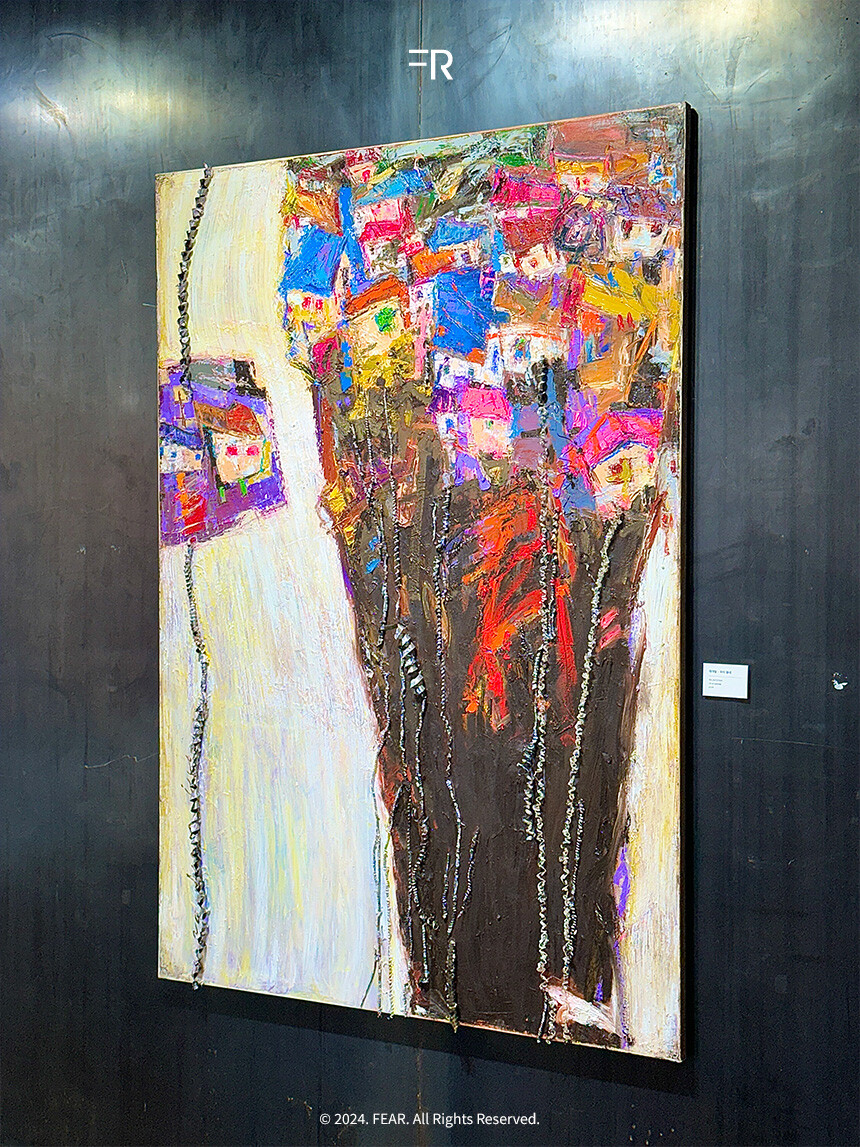 작품마다 녹슬고 부식 돼가는 쇠의 물질적 변화를 통해 삶의 혼란과 내적 갈등을 시각화 한 작품이라 마치 시간이 만들어낸 흔적과 감정의 무게가 그대로 드러나는 듯했습니다. 갤러리에서 보는 내내 저도 제 감정의 ‘섞임’을 들여다보는 시간이었습니다.