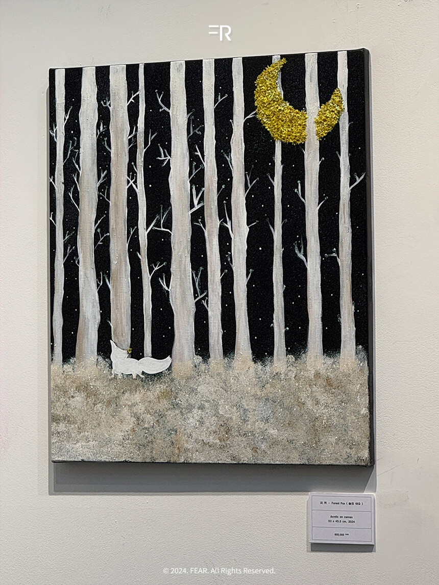 고요한 밤하늘을 배경으로 청춘의 자유로움을 표현하는 작가입니다. 그림 속 따뜻한 온기와 고요함이 동시에 전해져 한참을 작품 앞에 머물게 했습니다.