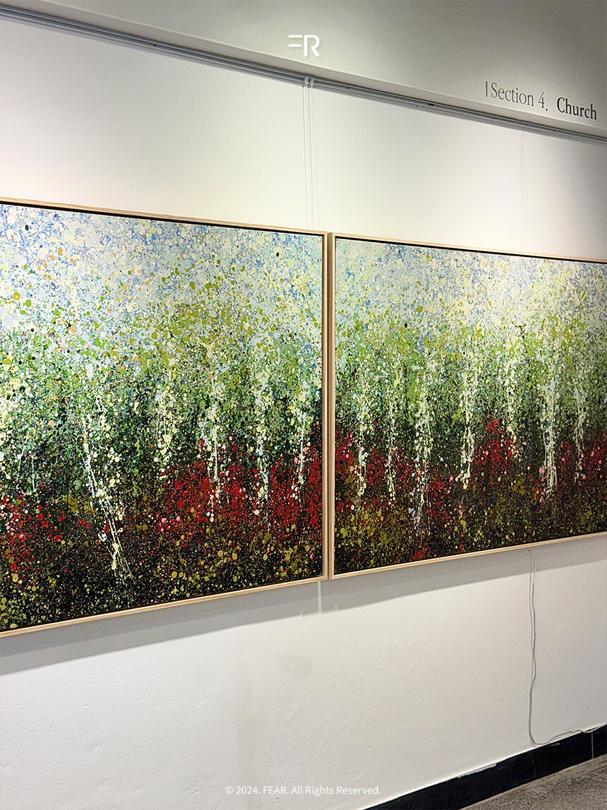 서로 섞일 수 없는 것들이 만나는 자리에서 느껴지는 긴장감과 어쩌면 신앙의 연약함을 담아낸 작품들. 마주 선 작품들 사이에 서니 제 안에 있던 미세한 균열과 갈등도 함께 떠올랐습니다.