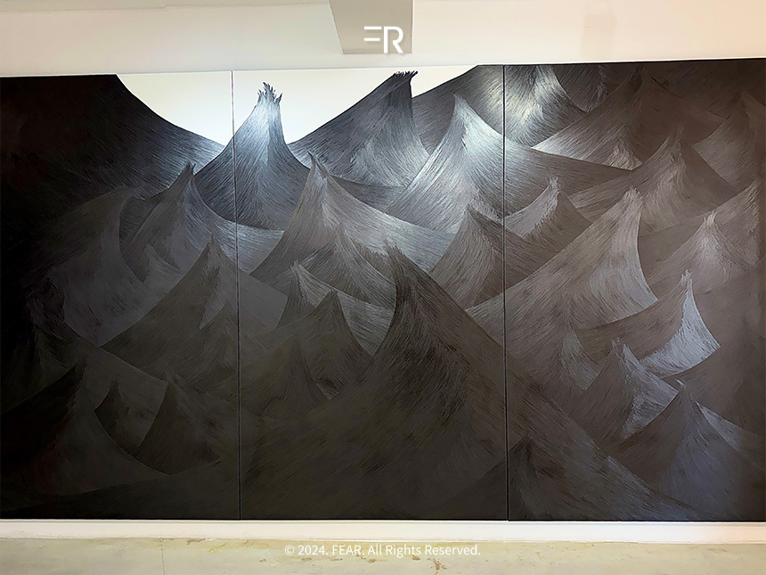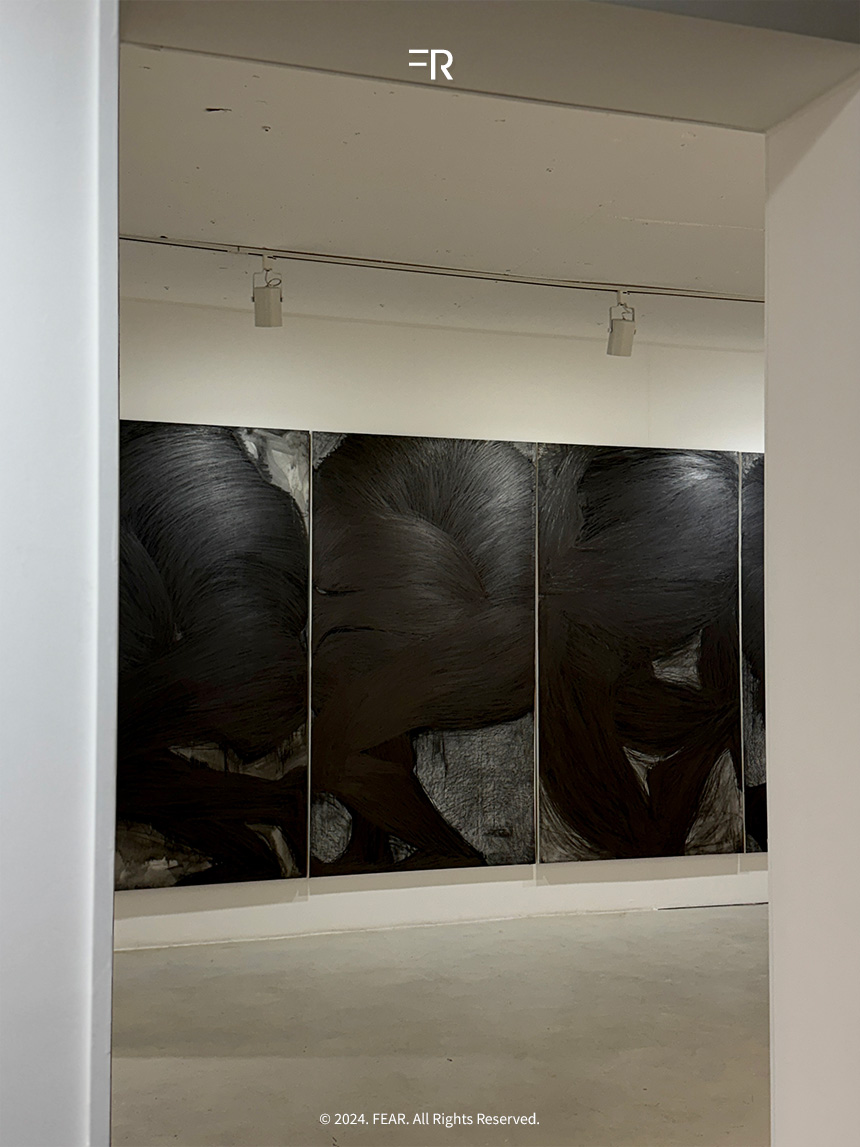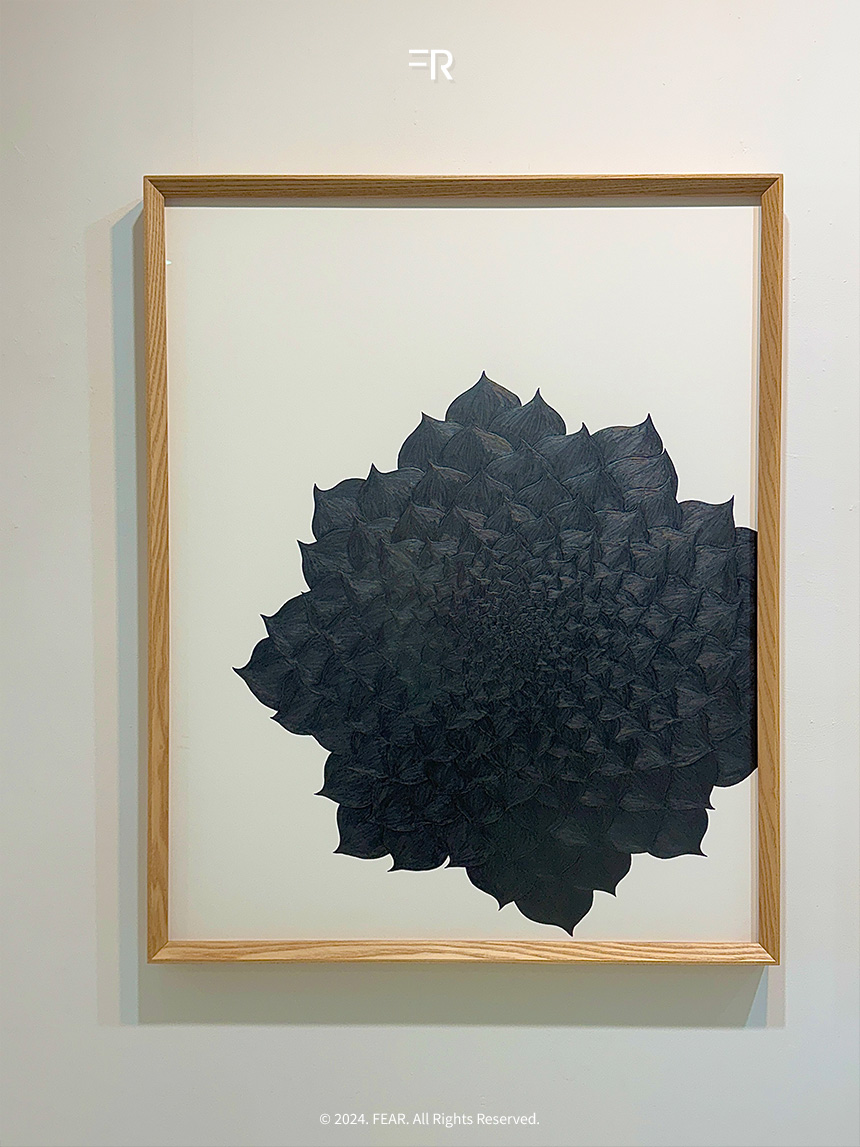 특히 반복적으로 쌓아 올린 연필 선들은 빛의 각도에 따라 미묘하게 흔들리며 보는 이의 감각을 일깨웠습니다. 작품 속 형상은 그리는 행위 자체에 집중한 결과물이었습니다.