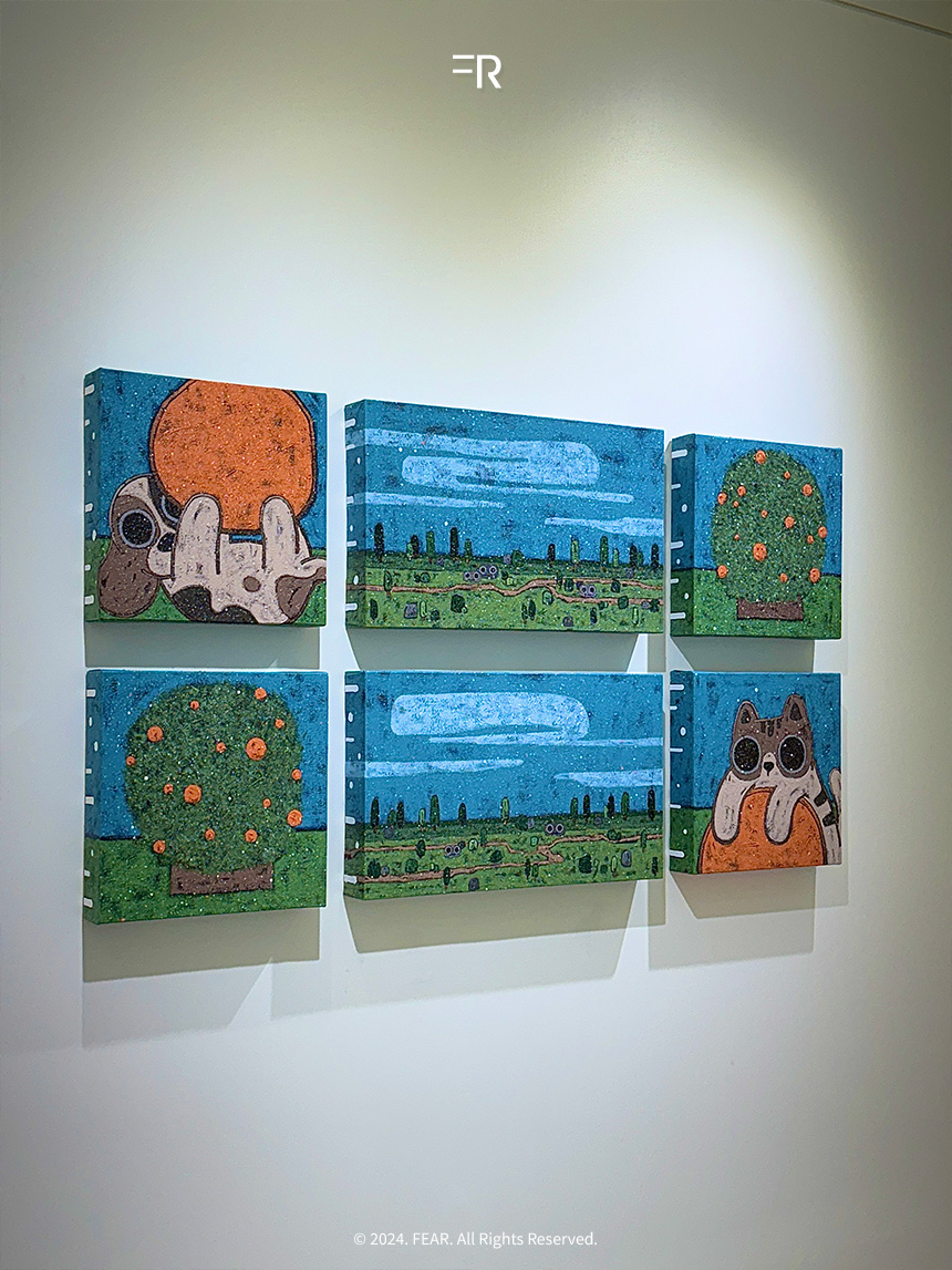 눈앞에 펼쳐진 작품 중 가장 기억에 남는 건 오렌지 열매가 주렁주렁 달린 가로수 아래의 풍경을 담은 그림이었습니다. 작가는 도시의 무채색 풍경 속에서도 생기를 잃지 않는 자연의 매력을 표현했다고 합니다.
