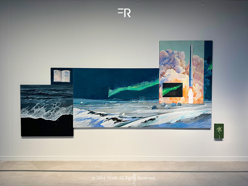 로켓이나 물줄기 같은 강렬한 이미지가 튀어나올 것처럼 그려져 있었는데 그 안에서 작가가 말하는 “돌파”라는 주제가 아주 명확히 느껴졌습니다. 직선적인 이미지와 명확한 색감 덕분에 작품 앞에 서 있는 것만으로도 스스로에게 “너도 앞으로 나아가야 해”라고 다짐하게 되는 기분이었습니다.