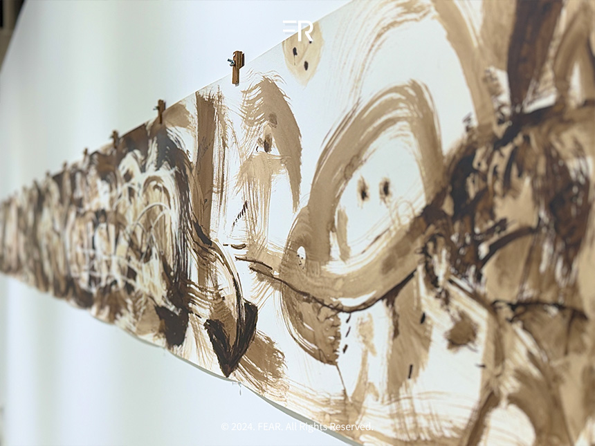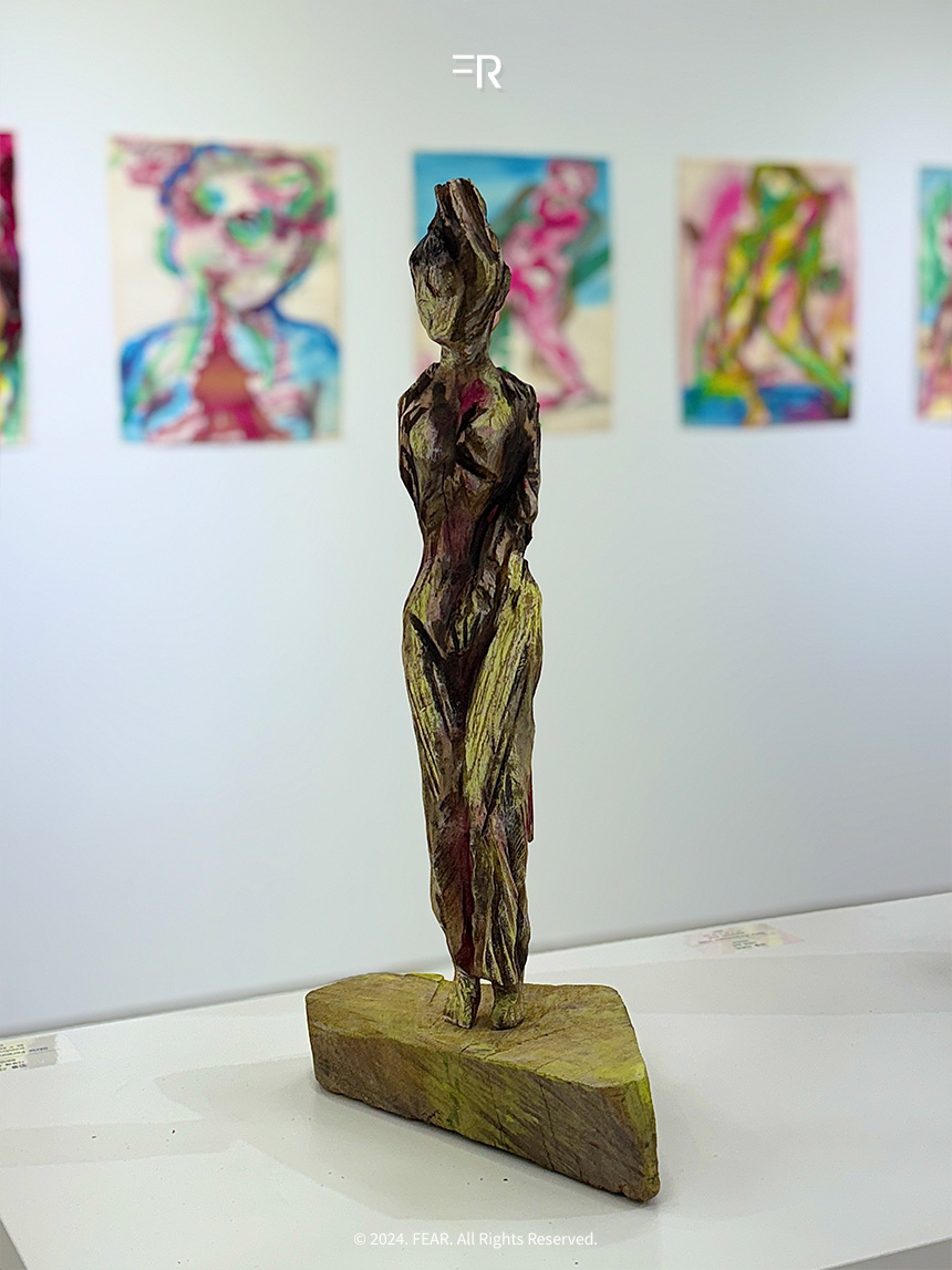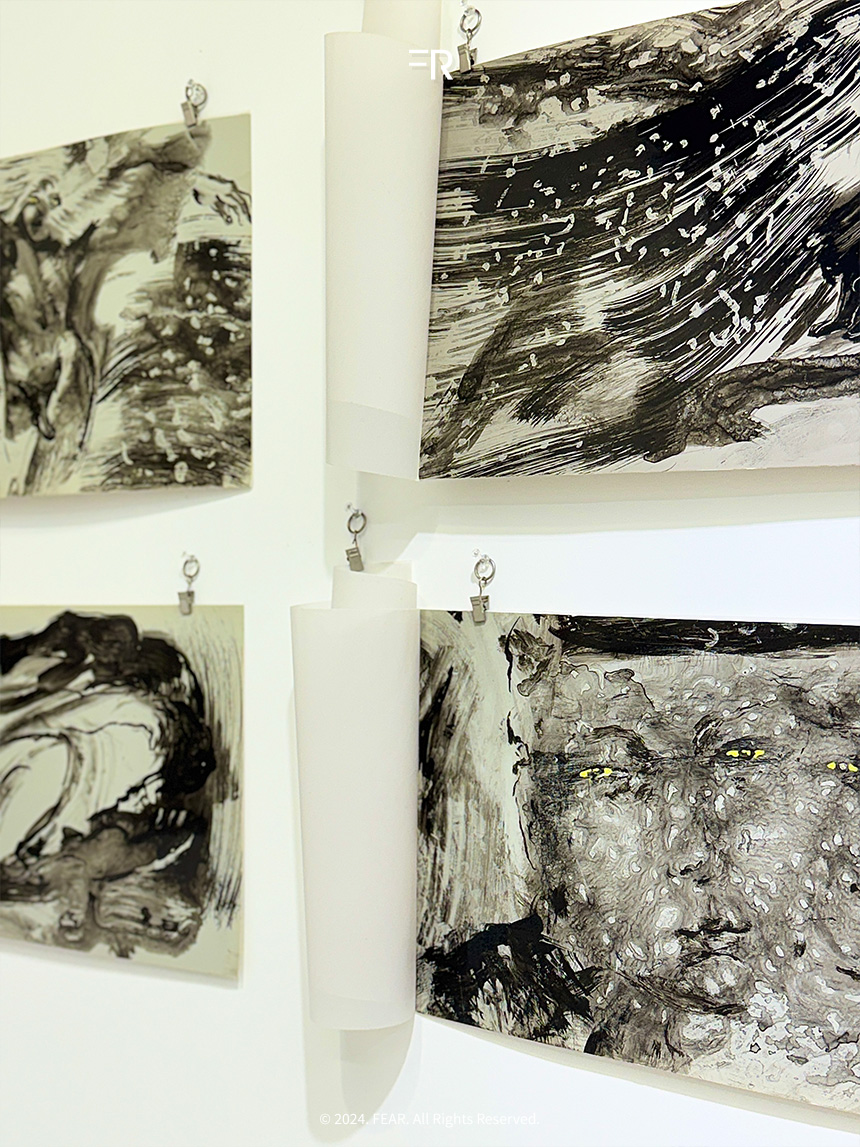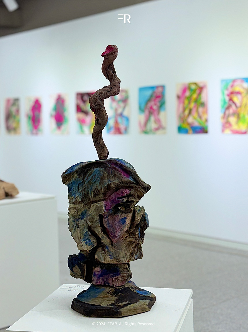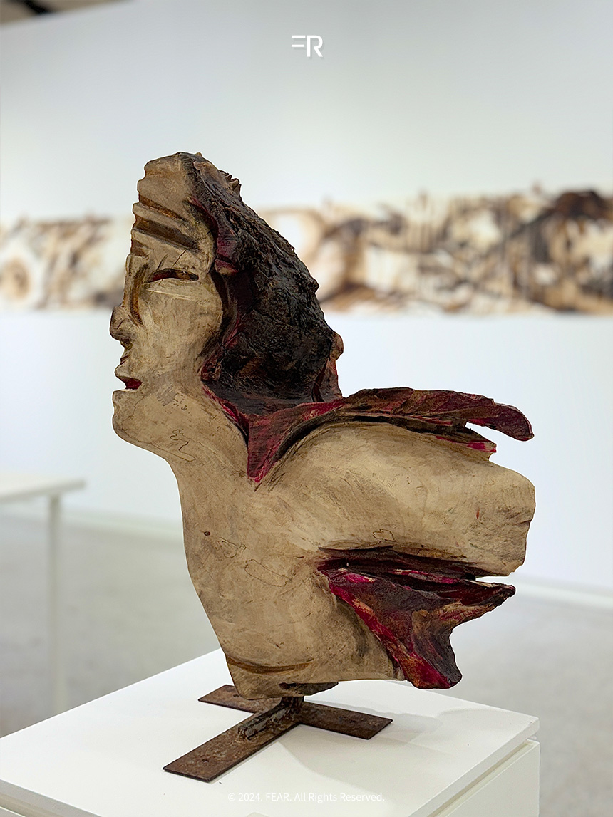 코스쿤은 현대적 도구와 직접적인 손작업을 결합해 작업을 완성한다고 합니다. 그의 손끝에서 만들어진 형상들은 감정과 제스처를 담아냅니다. 벽화나 기호처럼 그의 이야기를 담은 순수한 상징으로 남아 있었습니다. 이러한 작품을 마주하며 그가 자연과 인간의 연결고리를 어떻게 형상화하는지 느낄 수 있어서 색다른 전시였습니다.