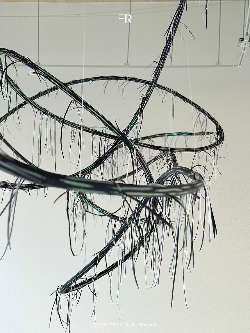변화무쌍한 빛과 뒤엉킨 선들의 흐름 속에서 마치 환경의 유기적 변화를 시각적으로 체험하는 듯한 느낌이 들었습니다. 작품 앞에 서면 공간 전체가 하나의 살아있는 작품처럼 느껴져 깊은 몰입을 유도했습니다.