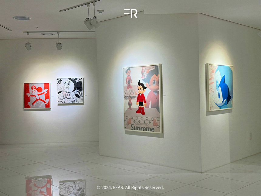 갤러리에 들어가니 강한 색감과 사랑스러운 캐릭터들이 환영해주는 느낌을 받았습니다. 캐릭터들은 어른이 되며 잊혀졌던 동심과 천진난만함을 떠올리게 했습니다. 한 작품 한 작품을 감상할 때마다 현실에서 벗어나 상상의 세계를 여행하는 기분이었습니다.