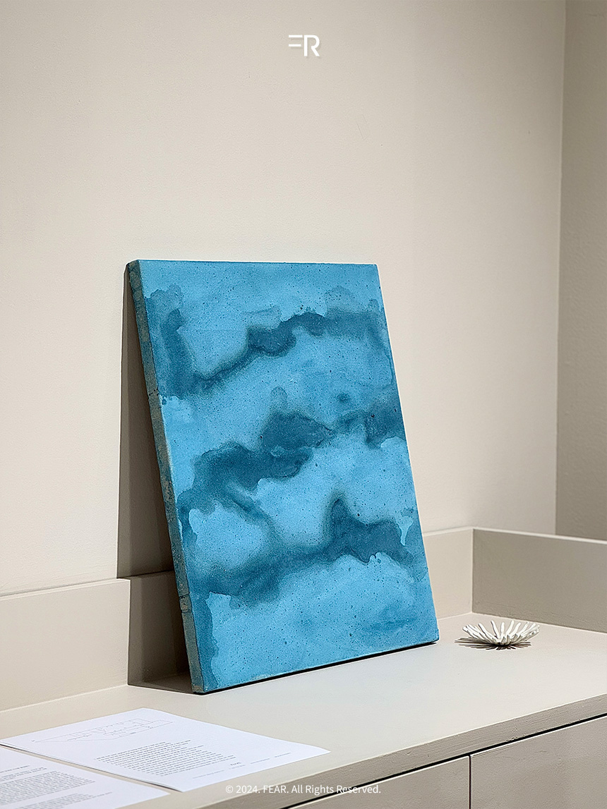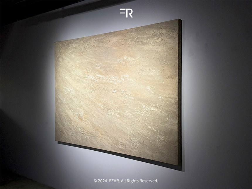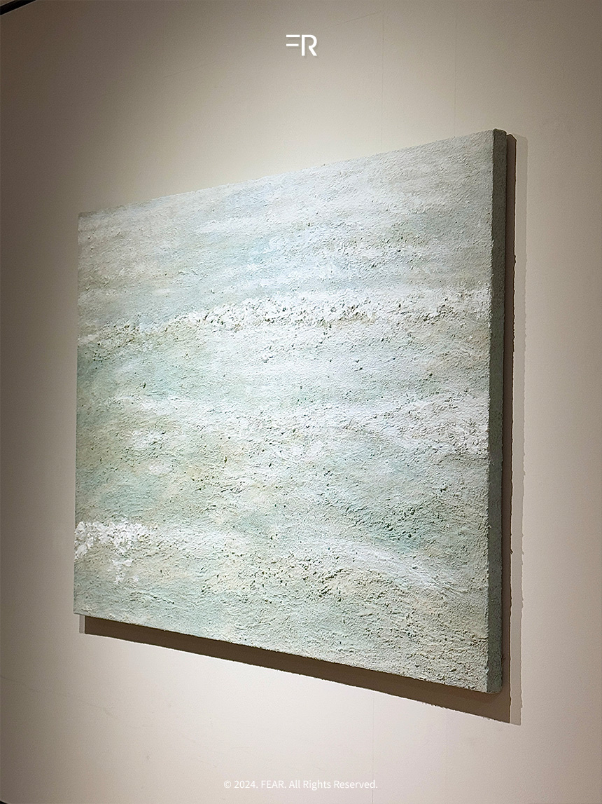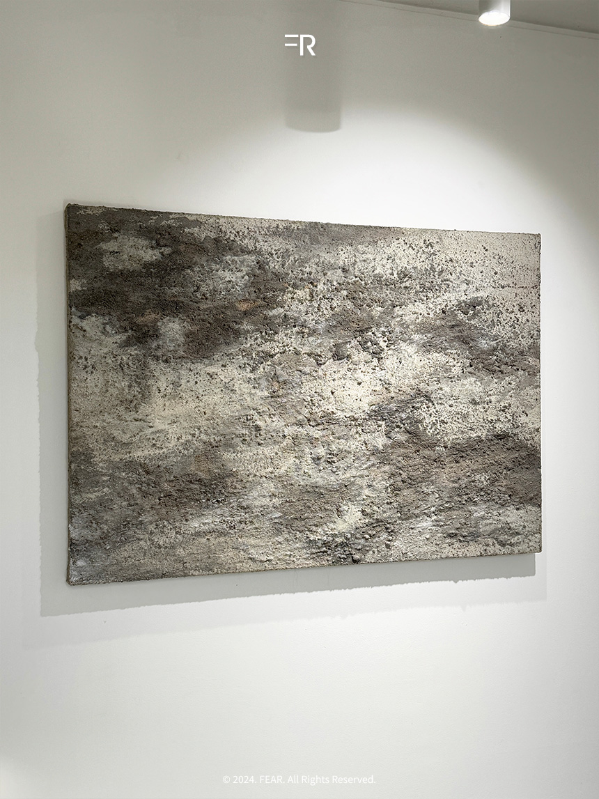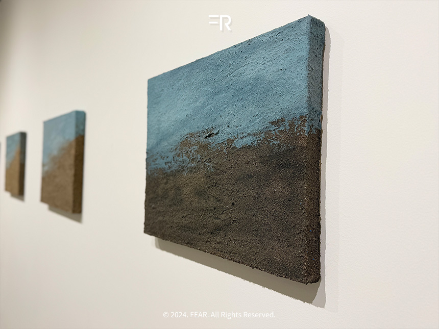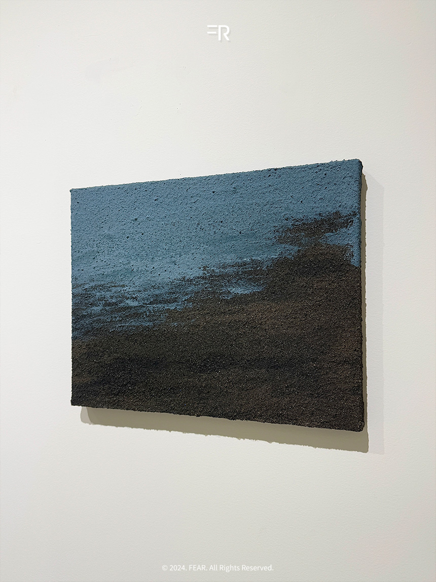 작가는 자연 재료를 다루며 우연성을 중요하게 여긴다고 합니다. 흙과 모래가 물과 섞이면서 생기는 예측 불가능한 효과를 적극적으로 활용해 작품을 완성한다고 하는데 이 과정에서 만들어진 독특한 텍스처가 작품을 더욱 생동감 있게 만들었습니다. 자연스럽게 번지는 물결을 표현한 작품들은 깊은 생각을 하게 했습니다.
