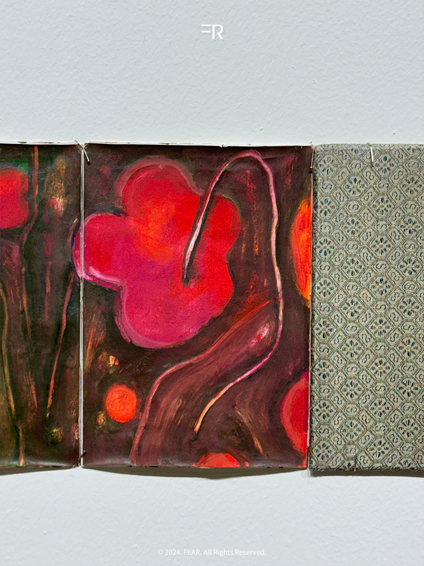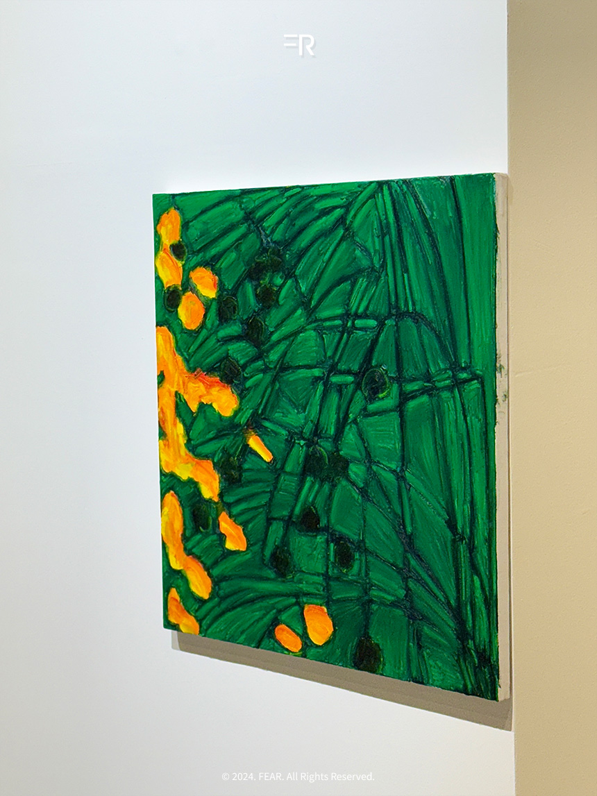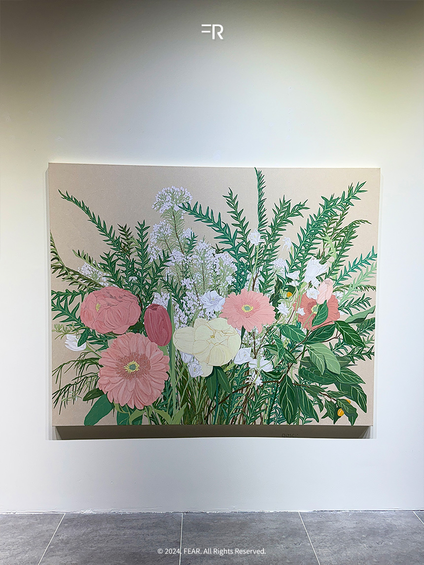 장건율 작가는 꽃과 식물의 형태를 단순화하고 재해석하여 조형적 실험을 이어갑니다. 그의 작품은 자연물을 점, 선, 면으로 분석하고 재구성한 결과물로 자연과 예술이 조화롭게 교차하는 순간을 보여줍니다. 작가가 캔버스에서 반복적으로 연구한 흔적들이 녹아들어 있어 작품 하나하나가 자연의 조각을 담은 작은 세계처럼 보였습니다. 자연의 변화와 다양성을 자신의 언어로 풀어낸 점이 특히 매력적이었습니다.