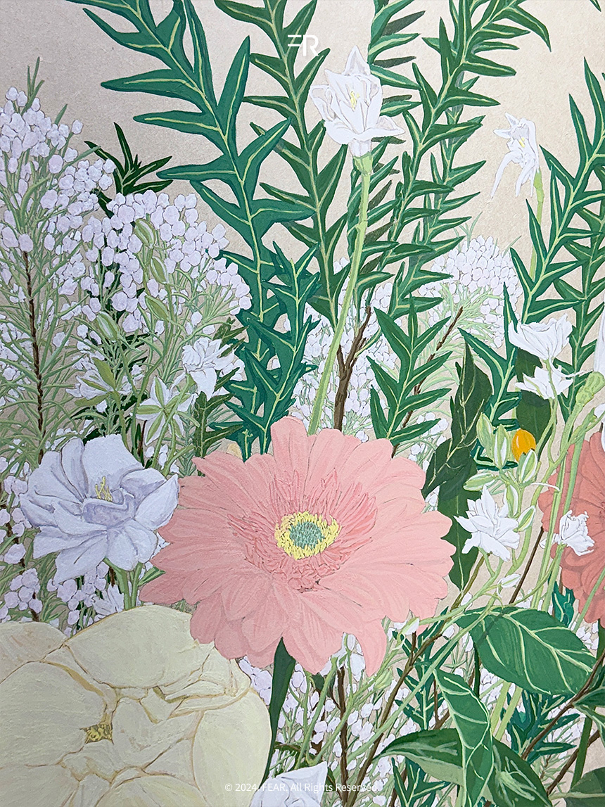 박준우 작가의 작품은 자연과 오랜 시간을 함께하며 그려낸 결과물입니다. 꽃, 나무 등 일상적인 풍경에서 작가는 그리움을 발견하고 이를 캔버스에 담아낸다고 합니다. 그리움이 깃든 붓질 하나하나에서 작가가 느낀 순간의 공간이 느껴졌습니다. 그림 속 꽃들은 작가와 오랜 시간을 함께 보낸 듯한 느낌이 많이 들었습니다. 정들고 그리운 것들을 통해 만들어진 그의 작품은 저에게 따뜻한 위로를 주었습니다.