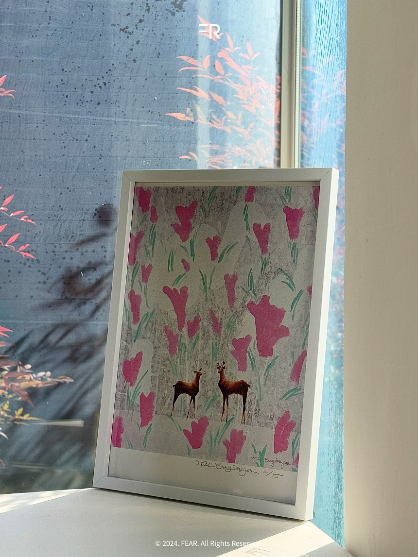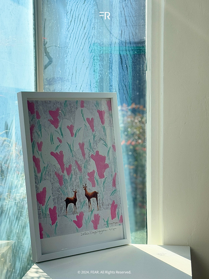 전시에서 가장 눈길을 끌었던 요소는 사슴 이미지였습니다. 사슴은 친근하면서도 신비로운 동물인 것 같은데 작가는 사슴을 통해 관계의 지속성과 소망을 이야기하고 있는 듯 했어요. 작품 속 사슴은 고요하지만 강인한 느낌으로 관계의 소중함을 더욱 강조하는 듯 보였습니다.
